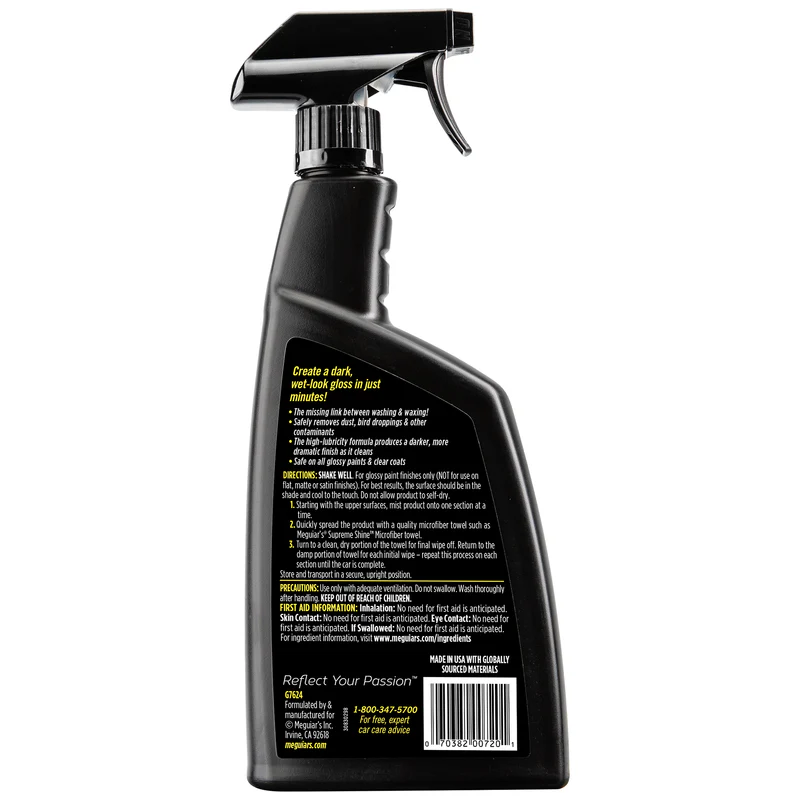ميجوايرز جولد كلاس بخاخ التنظيف السريع الفاخر صُمم ليعمل بكفاءة خاصة على الألوان الداكنة، ويُعد خيارًا مثاليًا لإزالة الغبار الخفيف وبصمات الأصابع والملوثات الحديثة بسرعة وبأسلوب لطيف. تركيبته آمنة وفعّالة على جميع الدهانات اللامعة والطبقة الشفافة، وتترك سطحًا شديد الانسيابية مع مظهر أعمق على السيارات الداكنة، مما يمنح الأسود تحديدًا درجة سواد أوضح ولمعة أغنى. وعلى الرغم من أنه لا يحتوي على بوليمرات طاردة للماء، فإنه يُعد من أكثر منتجات “الرش ثم المسح” قدرة على إبراز عمق اللون، مع الحفاظ على طبقة الشمع أثناء التنظيف الخفيف بين الغسلات.